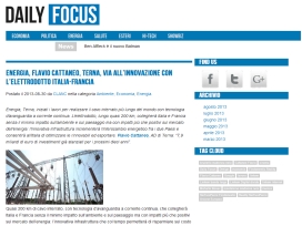 Cattaneo Flavio: Via alla prima linea elettrica internazionale finanziata da privati  E’ stato firmato presso il Ministero dello Sviluppo Economico il memorandum of understanding tra Terna, guidata dall’AD Flavio Cattaneo, e alcune federazioni di categoria che rappresentano settori energivori per la realizzazione della prima linea di interconnessione elettrica internazionale finanziata da privati. Si tratta di un secondo cavo privato, che correrà al fianco di quello di Piossasco, da 500 megawatt, a corrente continua. L'impegno economico per la realizzazione della linea privata sarà di 415 milioni per un totale di circa 800 milioni.