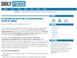 Web reputation pharma: Netscreening, italiani non amano le aziende del farmaco  | La prima indagine sulla “web reputation” delle pharma pubblicata su “AboutPharma and Medical Devices” realizzata in collaborazione con Netscreening. Gli internauti italiani non amano le aziende farmaceutiche. Tra blog, social network, chiacchiericci e semplici search, il web di casa nostra non mostra particolare affezione per i produttori di pillole. Ne parla poco – rispetto ad altri comparti industriali – ma soprattutto ne parla male. Da AboutPharma. | x |