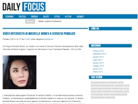 Michelle Bonev Video intervista a Servizio Pubblico  Sul blog di Michelle Bonev, su Twitter e sui canali di Servizio Pubblico l’anticipazione della video intervista all’attrice bulgara. I rapporti con Berlusconi e con Francesca Pascale, i film e la Rai.