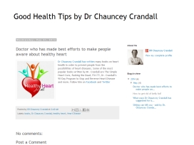 Doctor who has made best efforts to make people aware about healthy heart  Dr Chauncey Crandall has written many books on heart health in order to prevent people from the possibilities of heart diseases. Some of the most popular books written by Mr. Crandall are The Simple Heart Cure, Raising the Dead, FIX IT!, Dr. Crandall’s 90-Day Program to Stop and Reverse Heart Disease and more.