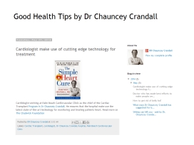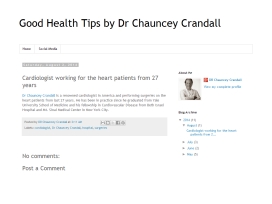 Dr Chauncey Crandall Tips About Health  Unlike to Dr. Chauncey Crandall, there is no other cardiologist in the town who could be so committed towards his patients like he is. He ensures patients and families that best possible treatment with utmost care would be provided to them that would surpass everyone’s expectations.