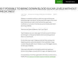 Is it possible to bring down blood sugar levels without medicines?  Diabetes is a medical condition in which the sugar levels become extensively high in the blood. The Pancreas is the organ in the human body that produces insulin, which controls the sugar levels. Insufficient or no insulin in the body can put an individual at risk of becoming a diabetic.