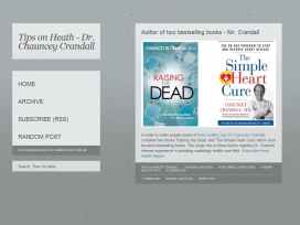 Dr. Chauncey Crandall's book, 'The Simple Heart Cure' is revolutionary!  Dr. Chauncey Crandall has compiled three books, The Simple Heart Cure, Raising the Dead and Fix It, each of which has proved to be an effective source of information for helping health conscious people and those suffering from heart ailments.