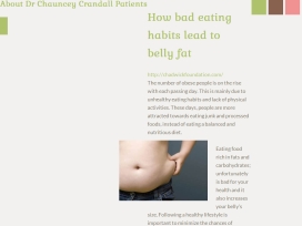 How to get rid of belly fat? - Dr. Chauncey Crandall  There are a variety of food items that increase fat around belly. Dr. Chauncey Crandall suggested people not to eat high sodium foods, alcoholic drinks, carbonated drinks, and carbohydrates to reduce excessive fat deposits around belly. According to Dr. Crandall, people should avoid drinking alcohol in order to maintain ideal weight.