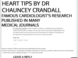 Famous cardiologist’s research published in many medical journals  Dr. Chauncey Crandall’s research papers, mainly on cardiology, were published in medical journals like Circulation, The Journal of Heart and Lung Transplantation, The European Heart Journal and The Journal of the American College of Cardiology. He also got some monetary grants for his various research projects.
