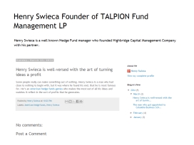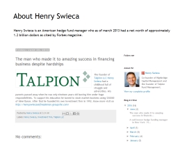 The man who made it to amazing success in financing business despite hardships  The founder of Talpion LLC Henry Swieca had a childhood full of struggle and adversities. His parents passed away when he was only nineteen years old leaving him under huge responsibilities. To support his education he turned to stock market business using $50000 of inheritance. After that he founded his own investment firm in 1992.