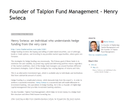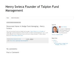 A dependable name for top-class hedge funding solutions  The owner of Talpion Fund Management that provides hedge funding solutions, Henry Swieca grew up in New York. Born to holocausts survivors, Swieca’s parents migrated from Poland to France in 1955. His parents passed away when he was nineteen. Despite facing hardships he made a fortune for himself.