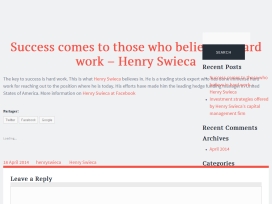 Success comes to those who believe in hard work - Henry Swieca  The key to success is hard work. This is what Henry Swieca believes in. He is a trading stock expert who has done immense hard work for reaching out to the position where he is today. His efforts have made him the leading hedge funding manager in United States of America.