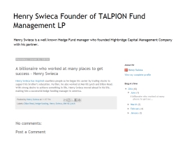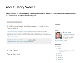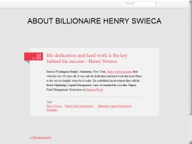 His dedication and hard work is the key behind his success - Henry Swieca  Born in Washington Heights, Manhattan, New York, Henry Swieca’s parents died when he was 19 years old. It was only his dedication and hard work that took Henry to the success heights where he is today. He established an investment firm with his friend, Highbridge Capital Management. Later, he founded his own firm Talpion Fund Management.