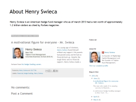 A motivational figure for everyone – Mr. Swieca  At a young age of nineteen, Henry Swieca found himself without any support. His parents had passed away and he had no financial back up. Despite the tough times and no financial support, Henry Swieca made a fortune from his hedge funding career.