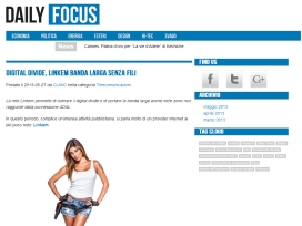 Linkem Digital divide, Banda larga senza fili  La rete Linkem permette di colmare il digital divide e di portare la banda larga anche nelle zone non raggiunte dalla connessione ADSL. In questo periodo, complice un’intensa attività pubblicitaria, si parla molto di un provider internet ai più poco noto: Linkem. | x |
