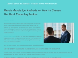 MARCIO GARCIA DE ANDRADE ON HOW TO CHOOSE THE BEST FINANCING BROKER  How many times have you tried to apply for financing only to be rejected by lenders? Fact is that there are several requirements needed to get the financing you need using your own personal credit history. You can always choose to find a good financing broker to help submit applications. However, there are hundreds of companies out there offering this service and you may wonder where to go.