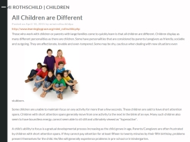 All Children are Different by Mimi Rothschild  Those who work with children or parents with large families come to quickly learn is that all children are different. Children display as many different personalities as there are children.