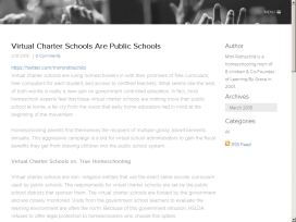 Virtual Charter Schools Are Public Schools by Mimi Rothschild  Virtual charter schools are luring homeschoolers in with their promises of free curriculum, free computers for each student, and access to certified teachers. What seems like the best of both worlds is really a new spin on government controlled education.