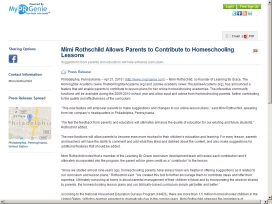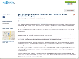 Mimi Rothschild Announces Results of Beta Testing for Online Contribution Program  Mimi Rothschild, co-founder of Learning By Grace, a leading online homeschool academy, is pleased to announce the results of a summer beta testing program that allows parents and students to contribute to the official Learning By Grace online lesson plans.