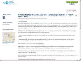 Mimi Rothschild of Learning By Grace Encourages Parents to Follow their ‘Calling’  With the continued moral decline in our nation’s public school system, many faith-based families are opting to homeschool their children and educate them from a Christ-centered perspective.