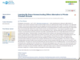 Learning By Grace Homeschooling Offers Alternative to Private Christian Schools  As the Great Recession continues to affect millions of Americans, many parents of students enrolled in private Christian schools are withdrawing their children and opting for a more affordable education.