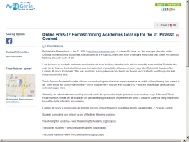 Online PreK-12 Homeschooling Academies Gear up for the Jr. Picasso Contest  Learning By Grace, Inc., the manager of leading online Christian homeschooling academies, has launched its Jr. Picasso Contest with plans of filling the virtual halls of its online Art Gallery by featuring students' works of art.