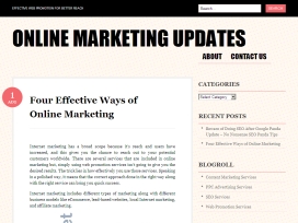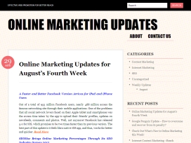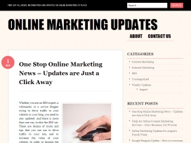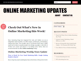 One Stop Online Marketing News – Updates are Just a Click Away « Online Marketing Updates  | Whether you are an SEO expert, a webmaster or a novice blogger trying to drive traffic to your website or your blog, you need to stay updated. And there is more than one way to skin the SEO cat. There are dozens of tricks and tips that you can use to drive traffic to your site, and to increase the value of your website. | x |
