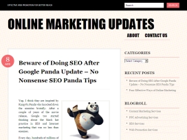 Google Panda Refresh is On the Way –How to Face Latest Google Panda Update? « Online Marketing Updates Blog  | Yesterday, just a couple of lines by the Giant took away the sleep of millions of webmasters across the world. Google announced its Panda Refresh (latest update) in a very tricky way. A Googler just said it in a few words “Panda refresh is rolling out –expect some flux over the next few days. | x |