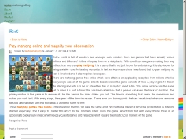 Playing Mahjong Games Online Have Great fun  | The Internet has changed how we consume all kinds of media and information. One of the areas it has changed our lives is in playing computer games. Before the Internet it was necessary to go to shop and purchase a diskette, game cartridge or CD before we could star tplaying. | x |