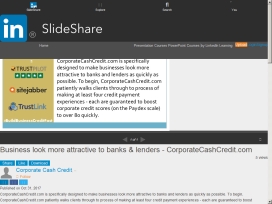 Business look more attractive to banks & lenders - CorporateCashCredit.com  CorporateCashCredit.com is specifically designed to make businesses look more attractive to banks and lenders as quickly as possible. To begin, CorporateCashCredit.com patiently walks clients through to process of making at least four credit payment experiences - each are guaranteed to boost corporate credit scores (on the Paydex scale) to over 80 quickly.