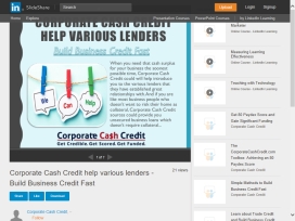 Corporate Cash Credit help various lenders - Build Business Credit Fast  When you need that cash surplus for your business the soonest possible time, Corporate Cash Credit could will help introduce you to the various lenders that they have established great relationships with..