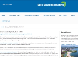 Looking for local email marketing lists? Browse Epic Email Marketing. They offer local email lists on the basis of zip codes. Their local email lists are fresh and regularly update. To know more about their local email marketing call them at 888-332-8399.