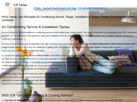 ICR Tampa is a professionally run and managed Air Conditioning Repair and other Services agency offering end to end HVAC solutions to its customers in and around Tampa. It has a qualified team of certified technicians, capable of handling small and big projects with dedication and expertise. It is the agency if you are looking for Air Conditioning Repair and Services in Tampa, Florida.