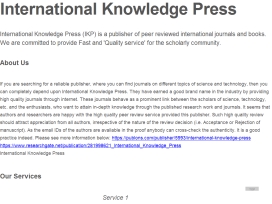 International Knowledge Press offers a great opportunity to the scientists and research scholars to publish their valuable findings and research papers, so that the interested readers can easily access them through internet. International Knowledge Press provides advanced peer review, indexing, DOI service, etc. This publisher claims that a dedicated indexing team is working to include all journals in reputed indexing services or journal evaluation services or catalogue or reference citations, etc. As a result, within a short span of time their journals have been included in many databases and the number is increasing every month.